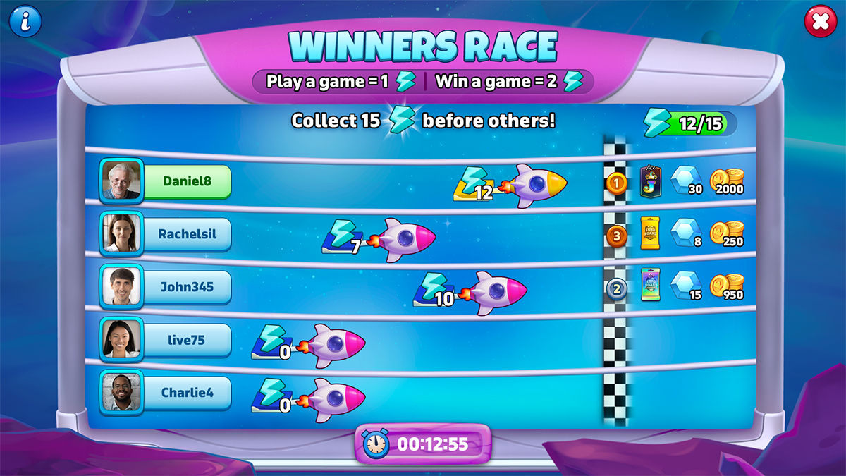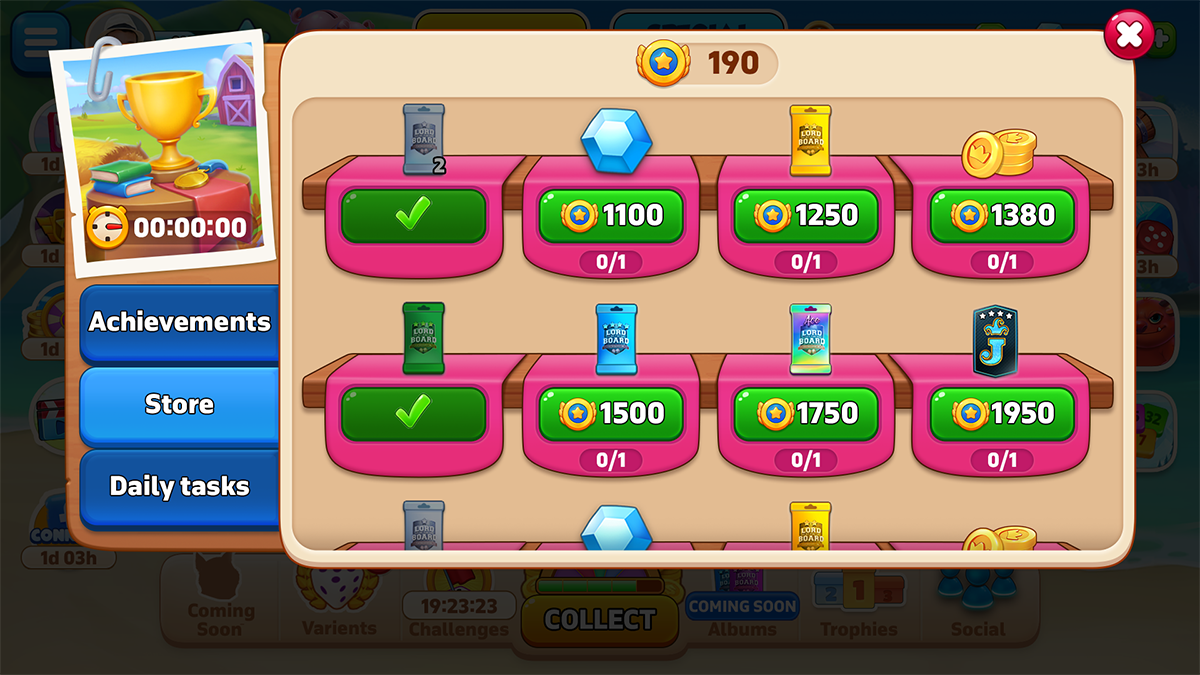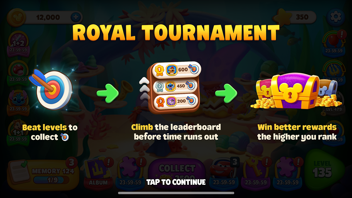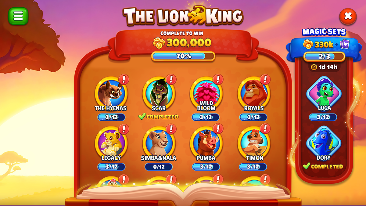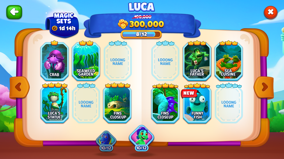 *All rights reserved to Beach Bum LTD / SuperPlay (Disney/Pixar), which I designed for as a UI/UX designer. Chef feature - Ratatouille Chef feature - start popup Merlin's potions feature Merlin's potions feature - start popup Tournament feature Tournament feature - info Lion king album feature Wicked villains album feature Joker start popup Joker selection screen Duel - 101 dalmatians Album - special magic sets Achievements feature Achievements feature - store Monopoly Battle pass Race - space Picker - magic Level up screen Daily challenges feature Daily bonus DOMINO GO's PICK 1 - mini game Lucky wheel for monopoly - mini game Loot box mini game - Halloween Saga quest - Treasure Let's be a team For new opportunities and collaboration please contact me